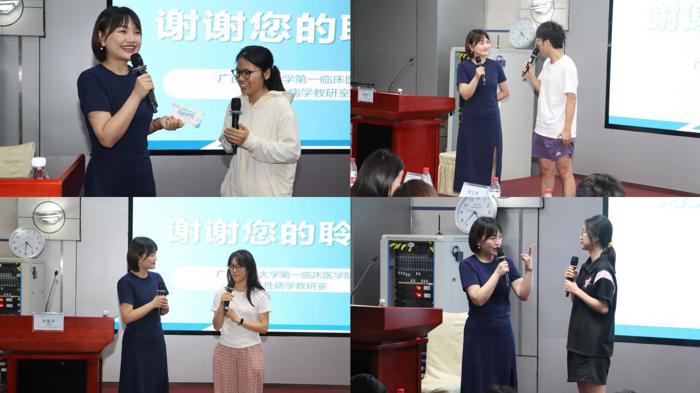 我院皮肤科主任曹存巍教授开场致辞,活动由校团委书记陈玉香与皮肤科党支部书记刘栋华教授主持。韦高教授、刘京平副教授、张馨予副教授、霍瑞玲护士长、梁维主管护师、罗彩丽主管护师等多名科室医护人员出席活动。