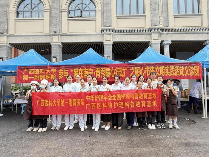 5月16日下午,我院急诊科第一、第二党支部携手门诊、全科医学科、皮肤科、检验科党支部赴中山路钟鼓楼旁开展“爱在南宁·青秀暖心行动”科普活动。