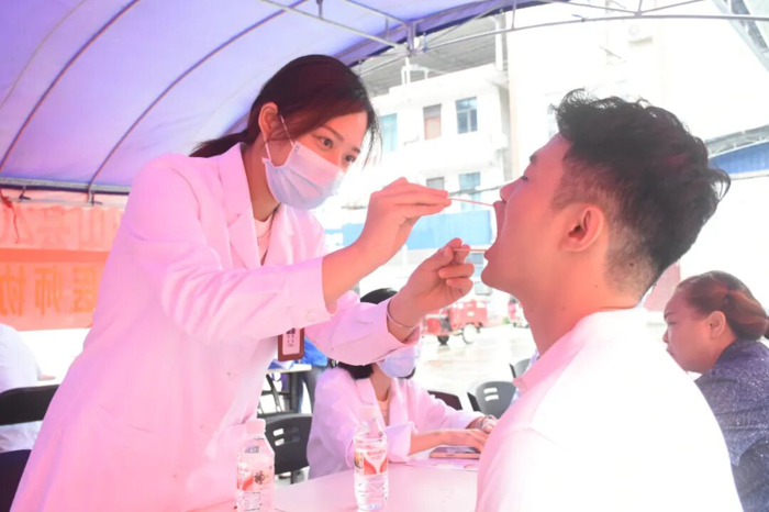 随后,博士团义诊组与医院派驻马山的16名医学博士、马山县人民医院联合在加方乡开展大型义诊活动。活动现场,队员们为当地村民进行血压测量、血糖检测和基本体检,并建立健康档案。