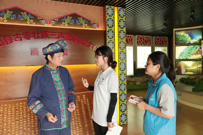 在古零壮族三声部民歌文化展示馆,成员们了解三声部民歌的起源与发展、传播与传承。三声部民歌是壮族人民在长期的生产生活中创造出来的独特音乐形式,其独特的和声与严谨的歌词结构展现了壮族人民深厚的文化底蕴。