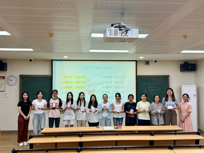 基于成绩分析结果,三班级均针对性制定新学期学风建设计划,围绕学分达标、绩点创优、外语突破等方向明确目标,力求缩小劣势、夯实基础。现场还安排学生代表分享备考经验与高效学习策略,为同学们提供实用参考。杨峥老师、李秋兰老师、班艺慧老师分别为学业优秀及进步明显的同学颁奖,并在总结发言中肯定各班“精准定位优势、清晰剖析不足”的复盘成效,鼓励同学们以本次会议为起点,在新学期深耕知识、提升能力、实现自我超越。