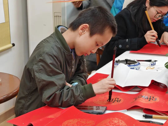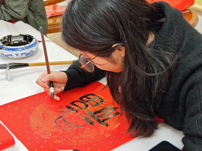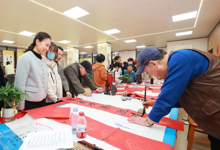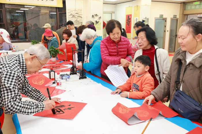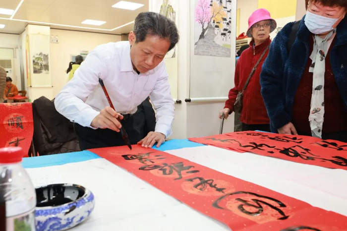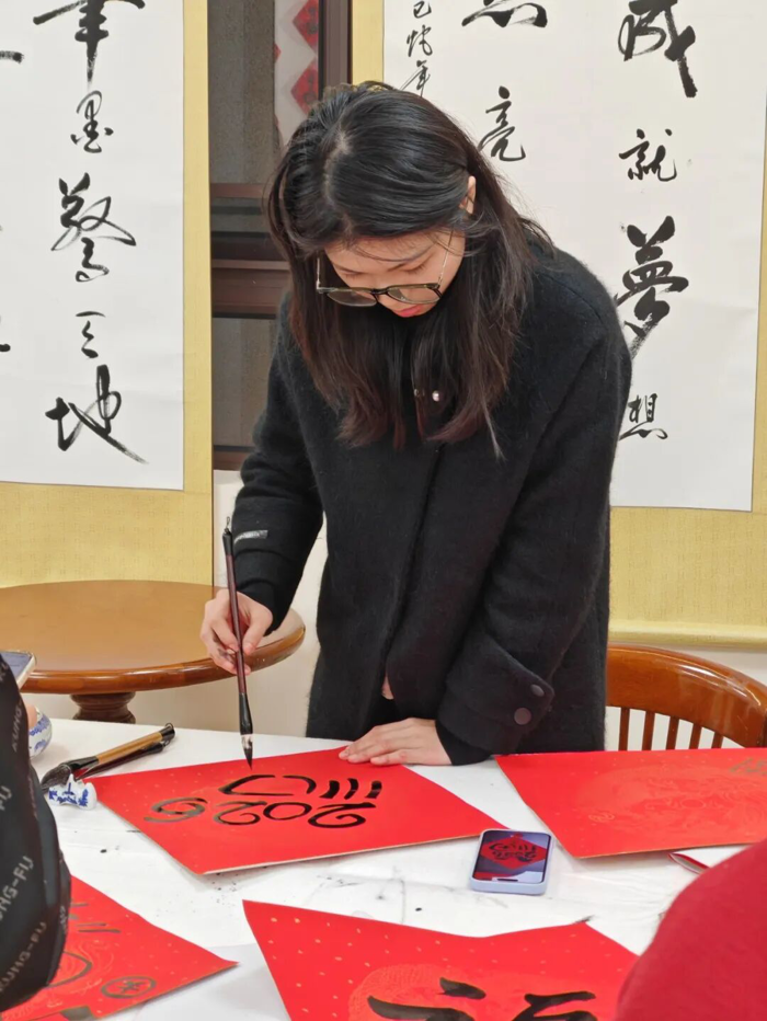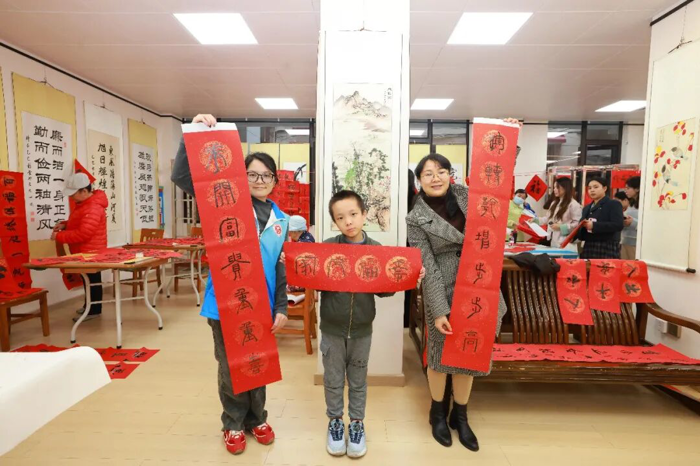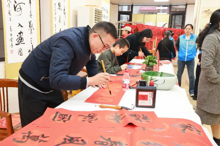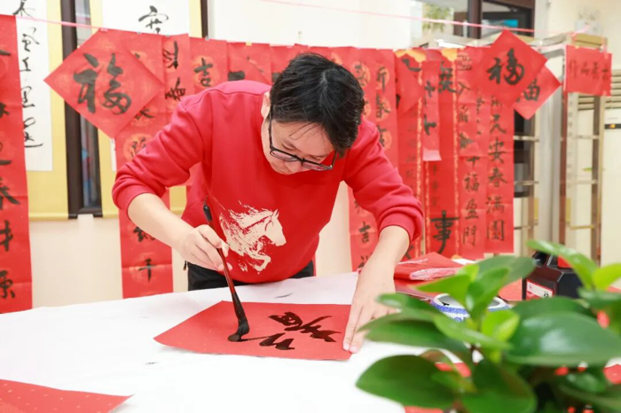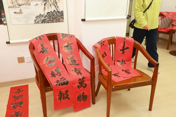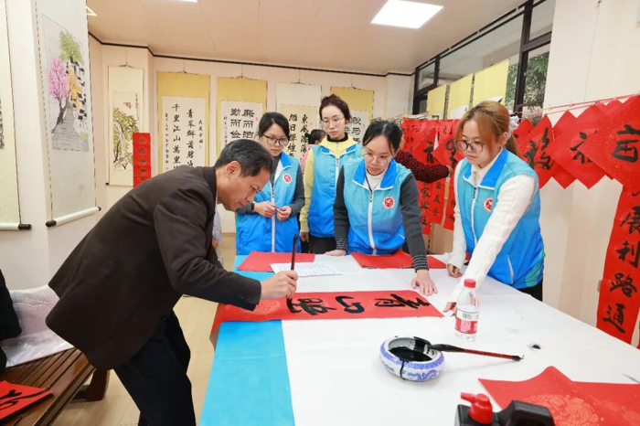 在“作品展示区”,学生志愿者们协助整理展示作品,对精选春联的寓意进行讲解,让参与者在领取祝福的同时,更深入理解春联文化内涵。墨香弥漫中,大家把一个个“福”字、一幅幅春联精心晾晒、小心收好,感到心满意足……这不仅是笔墨丹青的艺术享受,更是医院“尊老爱青、薪火相传”的文化特色。